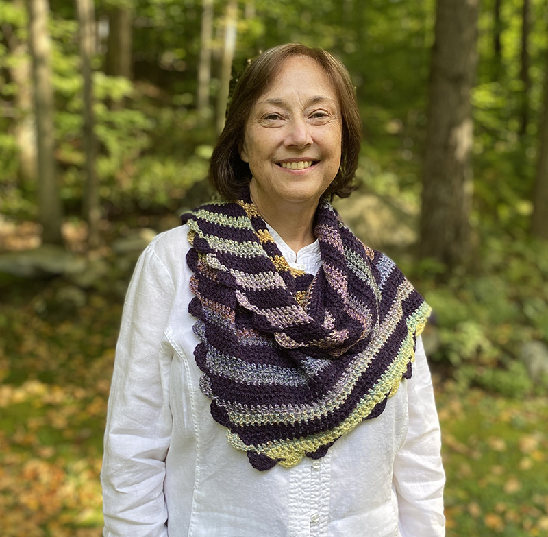 Catrina designs Tunisian, Celtic, and Standard Crochet accessories and has 95 designs for sale on Ravelry. Combining colors and developing color work patterns is her passion, especially creating reversible, no-float designs using Tunisian crochet in-the-round. Many of the designs are inspired by the Scottish Highlands, her ancestral home. Given the link between Scotland and the TV Series ‘Outlander’, Catrina was asked to be the crochet designer for a few Outlander knitting and crochet fan sites on Facebook.