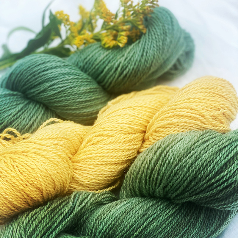 We have a small flock of Cormo and Cormo crosses that we raise here on our farm, and send out to be spun into various weights of yarn. We dye the yarn with plant dyes, found either on our property or bought from sustainable sources.