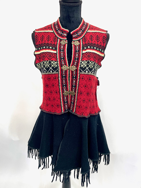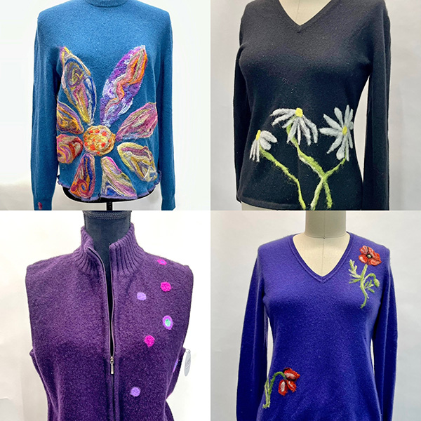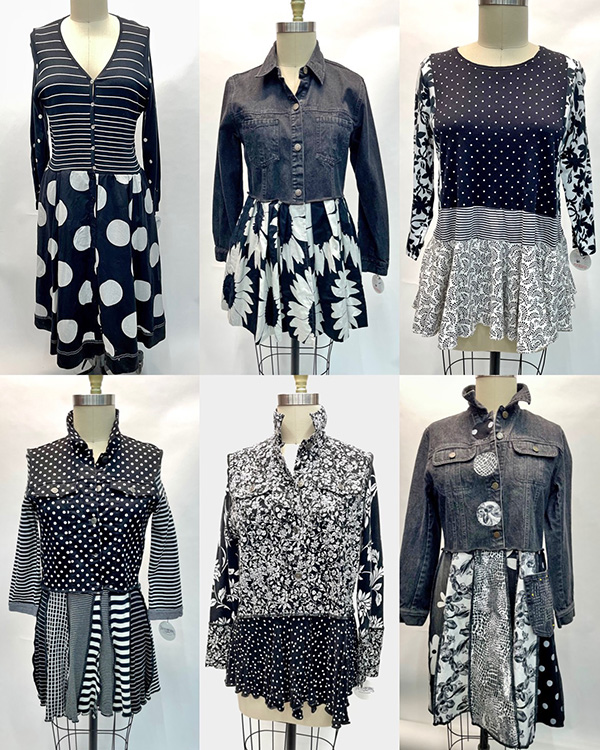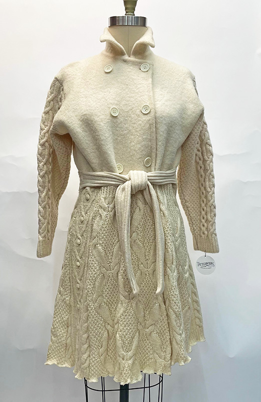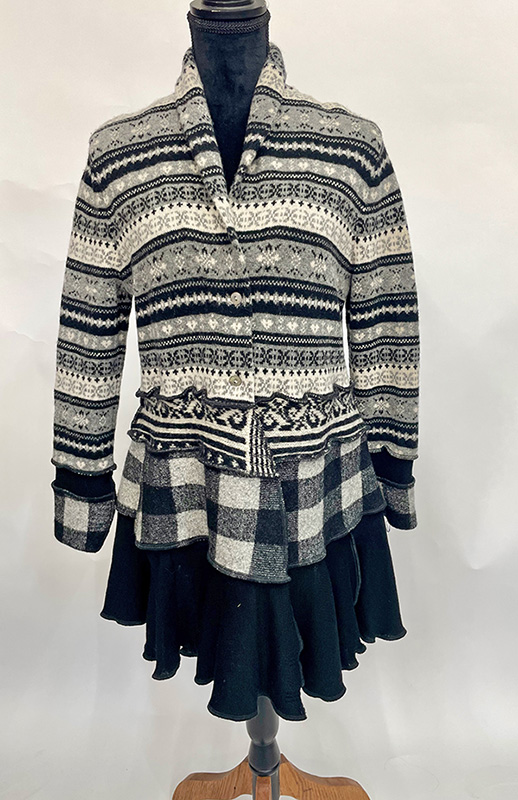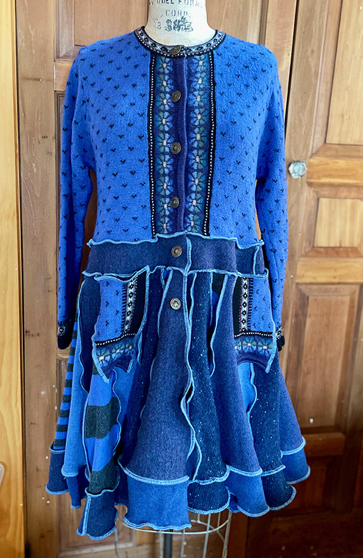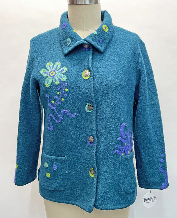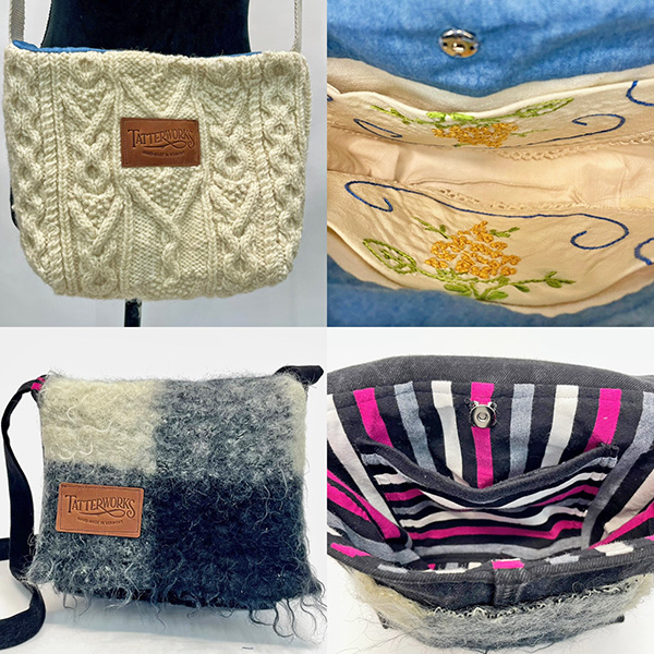 I started Tatterworks 10 years ago from my love of sewing and the idea of sustainably reusing clothing to make colorful, fun, one of a kind pieces of wearable art. I shop at thrift shops and buy pre-loved items of wool, cotton, denim, linen, and vintage textiles such as tablecloths, quilts, and crocheted work.